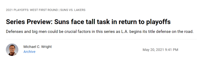 官网预测湖人4比2淘汰太阳!3大看点出炉,詹姆斯又将创造历史?
