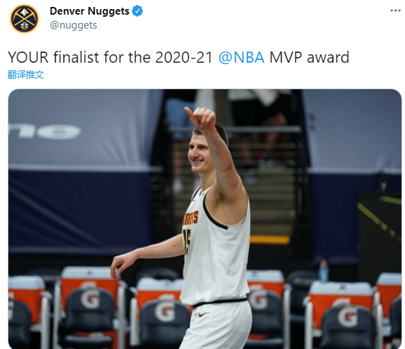 本赛季约基奇打满72场比赛,场均拿到26.4分10.8篮板8.3助攻,掘金47胜25负排在西部第三位,无论是球队战绩还是个人数据,他都配得上MVP;掘金官方晒约基奇表情,恭喜他入围MVP终极名单。