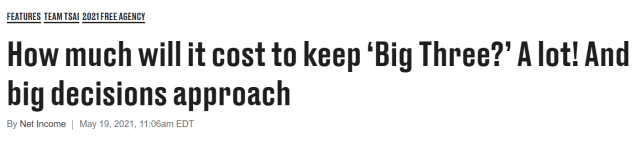 美媒指出,合同的最后一年(2025-26赛季),哈登36岁,杜兰特37岁,欧文34岁,他们三位的年薪都将突破5000万美元。毫无疑问,那还是前所未有的薪金压力。
