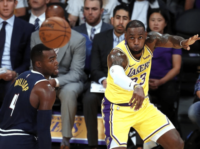 詹姆斯收下进攻篮板,运两下球观察场上局势。弱侧队友溜达篮下,詹姆斯瞬间一个四分卫长传,队友接球打板上篮。在阵地战中,詹姆斯识破对方传球路线,眼疾手快切断传球,奔袭到中场附近,双手胸前一推,浓眉篮下暴扣得手。只要湖人的防守反击打起来,比赛瞬间就会失去悬念。