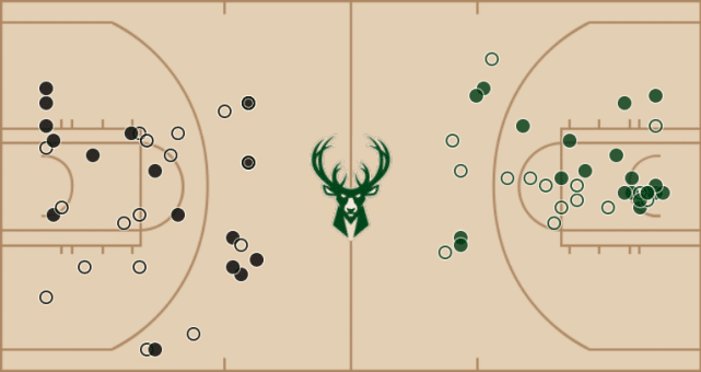 来源:24直播网05-03 18:3524直播网讯北京时间5月3日,雄鹿主场117-114险胜篮网,字母哥和杜兰特上演了一场“神仙打架”般的对决。字母哥36投21中,三分8投4中,得到49分8篮板4助攻1抢断3盖帽;杜兰特33投16中,三分13投7中,得到42分10篮板2助攻1抢断。两人在比赛中的巨星碰撞,让球迷连呼过瘾!美媒晒出了两人本场的投篮热图。