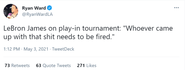 Evan Jeffries还表示,这种伤病,会影响詹姆斯的跳跃和落地。他推测这是过去两场比赛詹姆斯没有扣篮的主要原因。