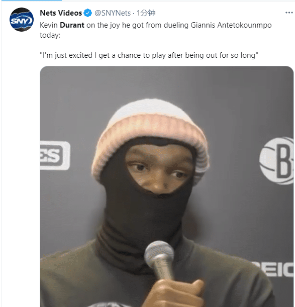 谈到对决雄鹿和字母哥,杜兰特表示:在缺席了这么久的情况下,我很兴奋我还有机会参加这场比赛;杜兰特还表示必须给予雄鹿尊重,表示输球原因——一是球队失误太多,二是雄鹿身高优势太大。