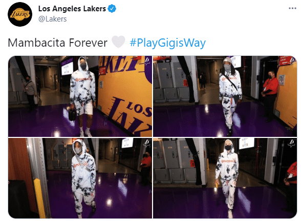 在Gigi的15岁生日当天,科比遗孀瓦妮莎正式发布这一款印有Gigi昵称的纪念服,这也是科比生前的一大愿望;瓦妮莎推出这款运动服引关注,詹姆斯、库里等巨星都第一时间穿上这款连帽衫;如今湖人全队集体穿Gigi纪念服出镜。