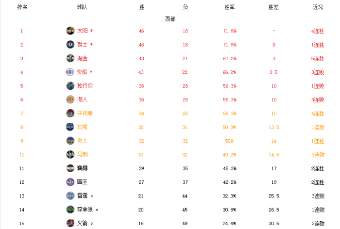 来源:24直播网05-03 18:2724直播网5月3日讯今天进行的NBA常规赛结束之后西部附加赛区域的变动是非常大的,湖人跌到第六名,和第五名独行侠、第七名的开拓者战绩一样。马刺和灰熊这两支球队被绝杀之后勇士渔翁得利,他们很有希望冲击第七和第八名。同时马刺的输球也令身后处于连胜中的鹈鹕看到了希望,他们的表现非常强势,所以从第五到第十一名,这些球队谁可以直通季后赛,谁拿下附加赛的门票,备受关注。