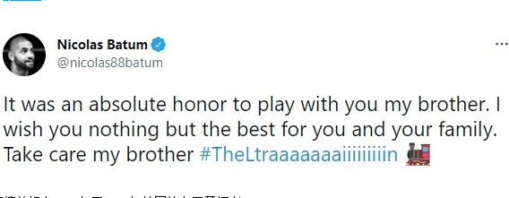 巴图姆在效力开拓者的时候也和阿德共事,看到前队友退役之后,这位快船球星表示:“很荣幸和你做过队友我的兄弟。我祝你和你的家庭一切顺利,保重兄弟。”