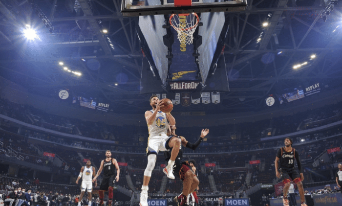 尴尬!维金斯离谱空接直接砸到篮板,库里在场边笑得合不拢嘴