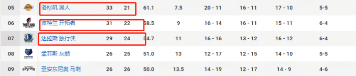 现在来看,西部有6队基本已经锁定季后赛,这应该没太大问题,分别是爵士,太阳,快船,掘金,湖人,开拓者等。目前,开拓者已经领先第七的独行侠2个胜场,胜率达到58.5%,参考以往西部季后赛的竞争,这样的胜率足以锁定季后赛了。而东契奇的球队遭遇两连败,在和东部豪强费城的证明对决中,独行侠以95-113惨败,目前以29胜24负排在第七,虽然也很有机会进入季后赛,但位置并不是很稳。