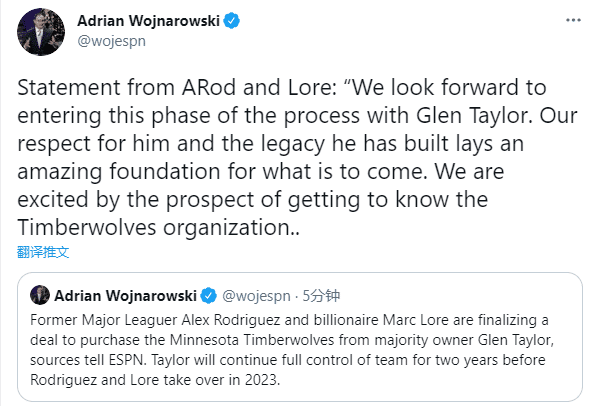来源:24直播网04-11 15:5924直播网讯明尼苏达森林狼就要被卖掉了,据ESPN名记沃纳罗斯基报道,三届MLB的MVP得主罗德里格斯和电子商务巨头马克-洛尔已经与森林狼老板格伦-泰勒签下一份意向书,二人斥资15亿美元将接替泰勒成为森林狼的新老板。