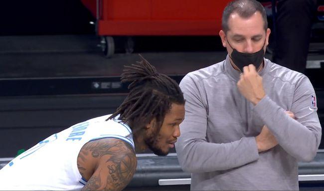 其次是后卫的问题。当哈登受伤,当欧文被罚下之后,篮网队又暴露出1号位没有人的问题,或许很多球迷会想到可以使用杜兰特当组织前锋,可是苏群老师在解说中就明确的表示,杜兰特的助攻失误比很高,杜兰特不适合组织,他更适合当一个终结点。