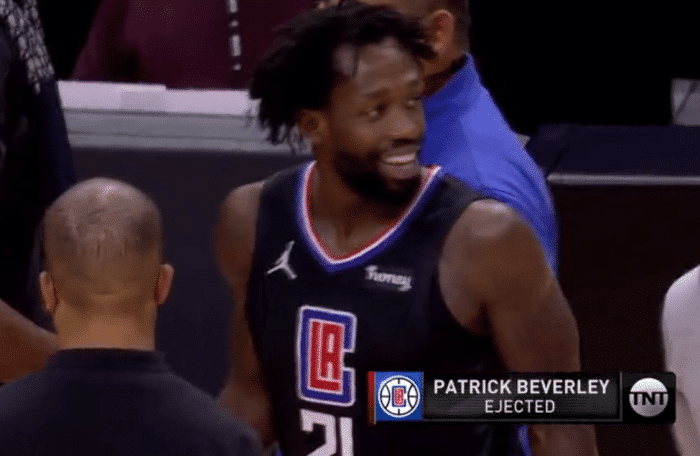 保罗显得很冷静,只是摊开双手向裁判抱怨,而队友则不干了,克劳德上前一边跟裁判抱怨一边质问贝弗利!全程贝弗利都是抬着手也不说话,最终裁判通过看录像回放把贝弗利驱逐出场,贝弗利则是没有任何歉意,直接大笑着离开,有点挑衅的意思!