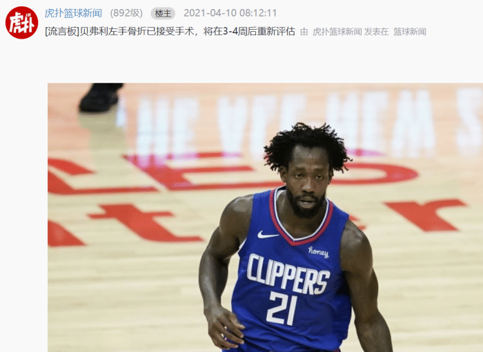 昨天推保罗导致的?贝弗利手掌骨折已进行手术,快船遭遇沉重打击!
