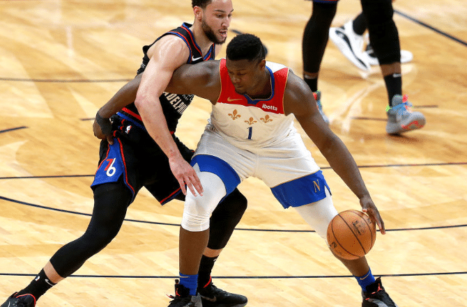 此役鹈鹕英格拉姆和刘易斯两员大将迎来复出,双方上半场打得势均力敌,半场打成50平。恩比德此役打得很吃力,而锡安半场轰下17分8板。下半场比赛,锡安延续自己火热的手感,下半场再轰20分。而恩比德的状态则更加低迷,下半场只得2分。虽然哈里斯全场拿下23分,但无奈双拳难敌四手,最终鹈鹕取得胜利。