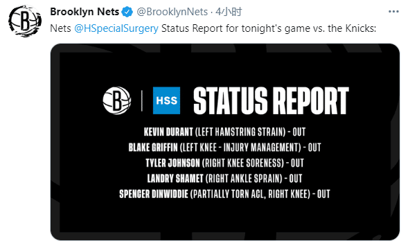 昨天欧文单核但对,篮网不敌公牛;今天背靠背对阵尼克斯,杜兰特、格里芬、沙梅特、泰勒-约翰逊和丁威迪五名球员因伤缺席比赛,但哈登伤愈复出,哈登再次和欧文一起带队出战;加盟篮网之后,哈登仅仅休战四场比赛,场均上场将近38分钟联盟第一,坐实了“最强打工人”的身份。