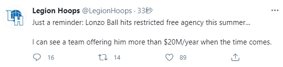 美媒LegionHoops发推写道:顺便提醒一下,鲍尔今夏会成为受限制自由球员,我觉得有球队愿意给他超过2000万美元年薪的大合同;去年休赛期,鲍尔没有拿到提前续约合同,你觉得他能如愿拿到生涯第一份大合同吗?