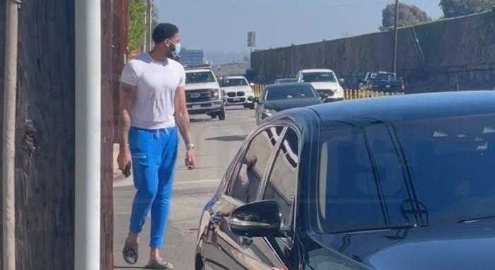 想起了科比!浓眉脚踩拖鞋现身车祸现场,与警察交流协助解决问题!
