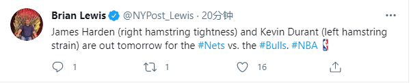 哈登因伤连续休战两场,杜兰特则是因伤连续缺席22场比赛,不过篮网完全体阵容即将首次合体,杜兰特和哈登有可能对阵尼克斯时一起复出;篮网六星豪阵相聚之时,便是联盟噩梦的开始,要知道三巨头仅仅在一起打过七场比赛,战绩6胜1负。