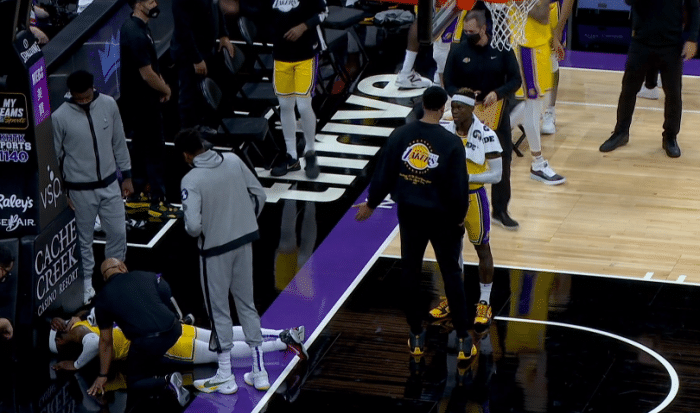 突发!湖人又伤一人,悍将颈部撞伤离场,施罗德陪伴+扶他返回更衣室