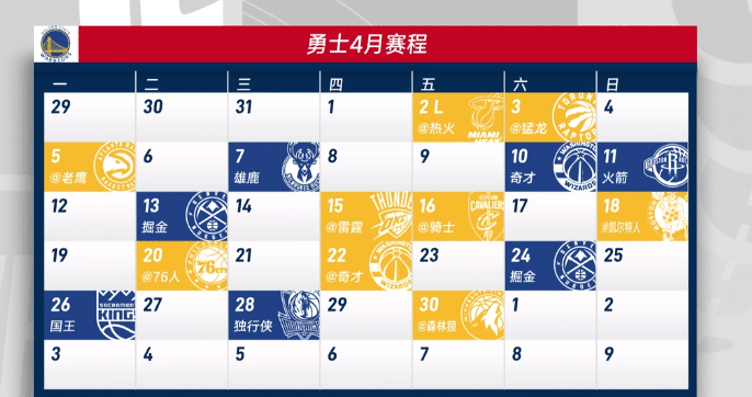 可以看到勇士接下来9天5战,其中还包括了背靠背面对奇才和火箭的比赛,这对于他们来说是不小的考验。同时接下来处于连败的勇士要面对老鹰和雄鹿,老鹰在换帅之后的表现是非常抢眼的,而雄鹿是本赛季被低估的总冠军热门候选球队,面对这两支球队,如果库里继续因伤休战的话,那么勇士胜算并不大。还有和掘金的比赛,掘金在得到了戈登之后的表现很强势,最近4战全胜,攻防俱佳,这对于勇士也是一个不小的考验。