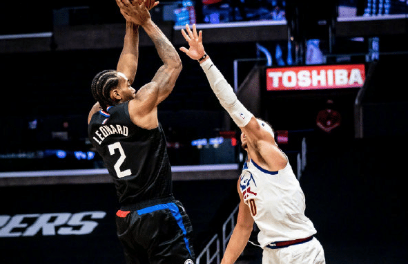 这场比赛莱昂纳德在最后阶段多次失误,末节还剩下2分16秒的时候,快船落后5分,莱昂纳德跳投没有命中,他摘板之后失误,被小波特拿到,随后掘金的进攻穆雷投进三分球,分差瞬间来到8分。