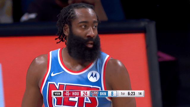 第二节比赛,哈登看起来似乎真的累了,单节比赛,哈登只出手了1次,单节拿到了3分、2助攻的数据,不过欧文和哈里斯的挺身而出,让篮网队将比分缩小到11分。