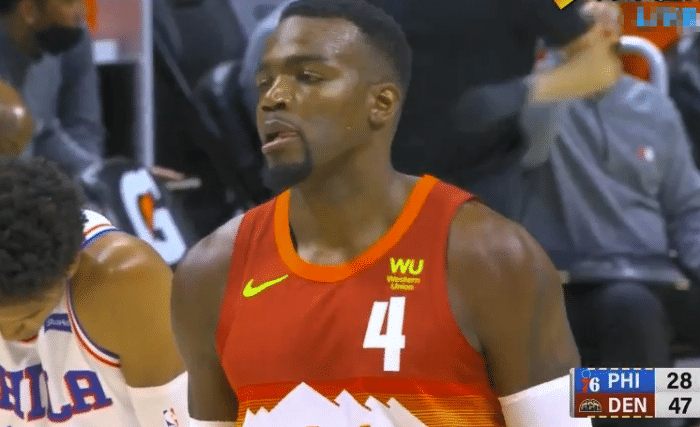 第二节的比赛掘金队这边进攻端手感稍稍下降,但是球队还保持着20分左右领先优势,76人这边没有组织起什么有效的反击,比赛最后时刻,霍华德在一次防守的过程中打到了巴顿的头部,裁判吹罚了一级恶意犯规。半场比赛打完,掘金68:45领先76人23分。上半场的比赛霍华德10分6板,这两项数据皆是两队最高,67人这边波特20分,穆雷18分。