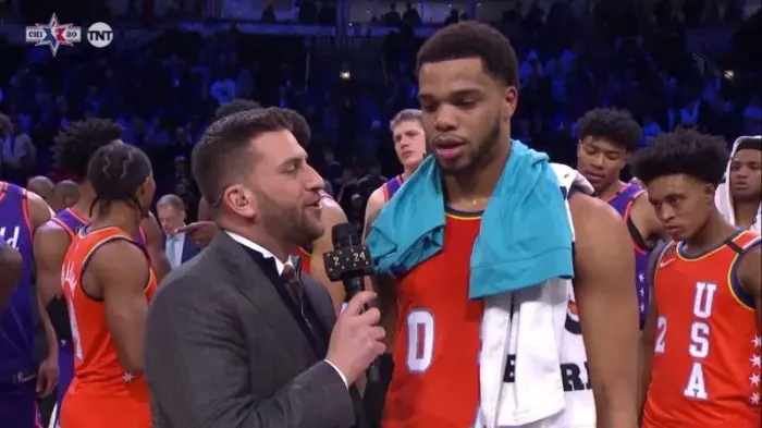 可能塞克斯顿一防二的能力就是在那时练出来的。开个玩笑!毒液前面说了那么多,单纯只想把塞克斯顿拉出来大吹特吹,这位精神小伙太招人稀罕,每个毛孔都能散发出来斗志和好胜心,去年全明星新秀挑战赛盯着MVP奖杯的眼神,至今令人记忆犹新。