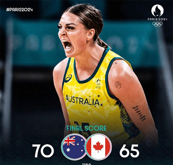 24直播网讯:北京时间8月1日奥运会女篮小组赛,澳大利亚女篮对阵加拿大女篮。本场比赛老将们的发挥是澳大利亚取胜的关键因素,36岁的惠特科姆、30岁的塔尔博特和35岁的凯拉-乔治发挥出色。加拿大开场先声夺人,但澳大利亚很快夺回领先优势,半场澳大利亚女篮38-32加拿大女篮,最终澳大利亚女篮70-65加拿大女篮。