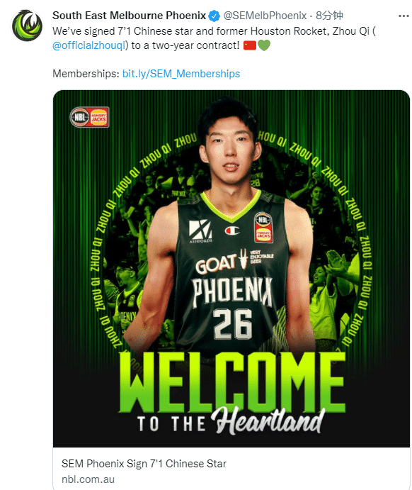与此同时,周琦感谢东南墨尔本凤凰队的诚意与认可,期待与主教练Simon Mitchell及教练组的合作;也感谢发来邀请的其他几支球队;最后感谢中国篮协,能更好地为中国国家队贡献绵薄之力是我不变的追求和目标。