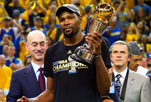 2017年,NBA第一届年度颁奖典礼,杜兰特荣获2016-17赛季季后赛最佳瞬间奖。