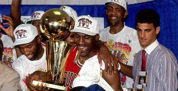 1993年,乔丹带领公牛在五次季后赛中四次战胜帕特里克·尤因率领的纽约尼克斯。在关键的第五场,乔丹打出了“三双”表现:29分、10个篮板和14次助攻。随后,公牛在六场内过关。在总决赛,乔丹在面对菲尼克斯太阳的六场比赛中创造了一项纪录:他场均得到了41.0分,成功夺得三连冠 .