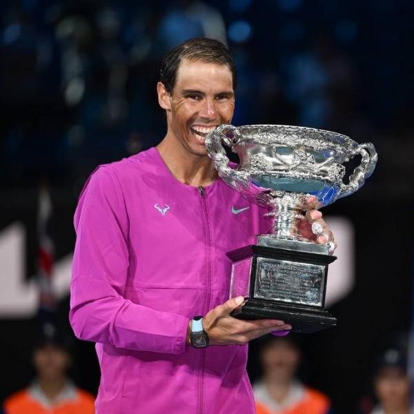 24直播网讯北京时间1月30日晚,2022澳大利亚网球公开赛男单正赛决赛落幕。在罗德-拉沃尔球场,6号种子、西班牙名将纳达尔,鏖战5小时24分钟,在先失2盘后,连扳3盘,以2-6/6-7(5-7)/6-4/6-4/7-5,大比分3-2逆转2号种子、俄罗斯选手梅德韦杰夫,赢得个人第2个澳网冠军,也是他的第21个大满贯冠军,超越了罗杰-费德勒和诺瓦克-德约科维奇,独自领跑男单大满贯历史冠军榜。