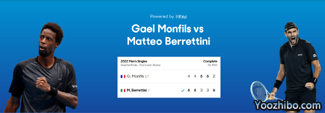 综合直播澳网 2022澳网男单1/4决赛 孟菲尔斯vs贝雷蒂尼 全场录像回放