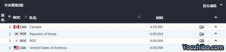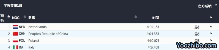 中国队第一组出战,最终以仅次于荷兰的4:04:383的成绩,小组第二晋级A组决赛!