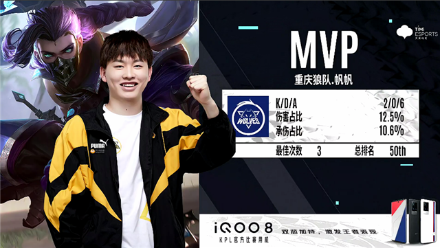 重庆狼队选用:廉颇、太乙真人、虞姬、周瑜、橘右京
