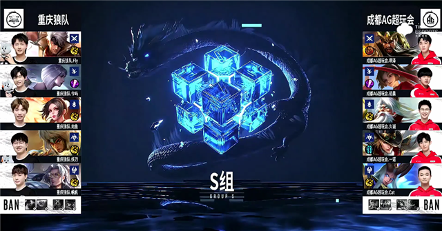 重庆狼队选用:鲁班大师、镜、不知火舞、成吉思汗、夏侯惇