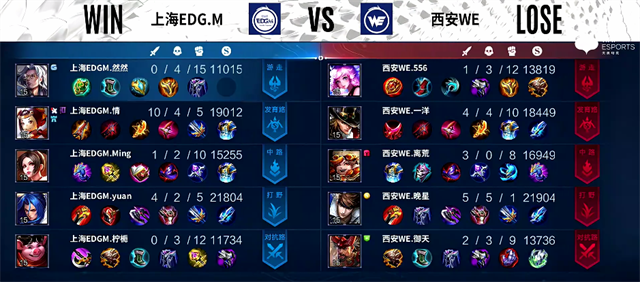 上海EDG.M禁用:镜、大乔、不知火舞、上官婉儿