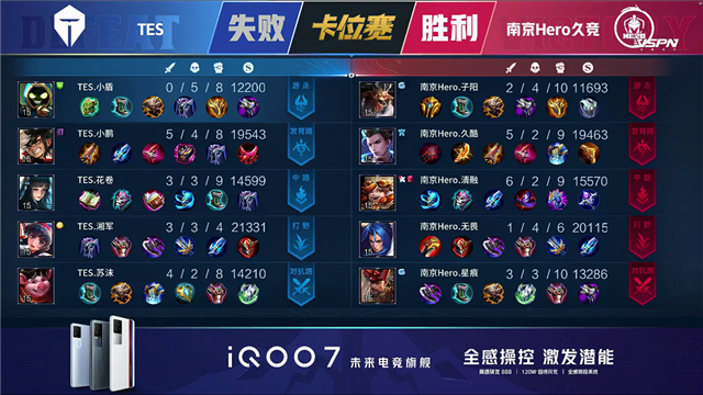 双方平稳开局。2分20秒TES拿下第一条暴君,2分45秒南京Hero澜击杀东皇太一拿下一血。4分09秒TES蹲草击杀西施,拆掉南京Hero下路一塔。6分10秒中路团TES击杀猪八戒,7分39秒团战双方1换1。10分20秒TES拿下暗影暴君,11分10秒南京Hero拿下暗影主宰。15分17秒TES拿下暗影暴君,团战双方1换1,TES拆掉南京Hero中路一塔。16分16秒下路团双方TES击杀澜拆掉南京Hero下路二塔,16分40秒TES打出0换2。17分37秒TES拿下暗影主宰,18分25秒南京Hero击杀东皇太一。19分49秒南京Hero拆掉TES中路一塔,21分04秒南京Hero击杀东皇太一。21分15秒团战南京Hero打出0换4,TES仅剩百里守约一人无力防守,被一波拆掉水晶。