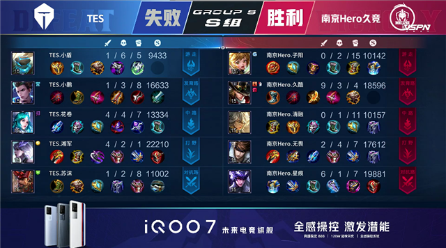 2分16秒,南京Hero拿下暴君。4分40秒,下路团,双方2换2,马可波罗拿下双杀。5分10秒,南京Hero破掉TES下一塔。7分07秒,南京Hero破掉TES中一塔。7分44秒,中路团,南京Hero击杀马可波罗。8分11秒,南京Hero破掉TES下二塔。9分48秒,TES拿下先知主宰。10分47秒,TES抢下暗影暴君,随后团战TES打出1换4,不知火舞与马可波罗拿下双杀。11分27秒,TES下路击杀墨子团灭对手,随后破掉南京Hero中路高地。12分28秒,TES不知火舞击杀澜,随后控下暗影主宰。15分09秒,TES拿下暗影暴君。16分12秒,TES破掉南京Hero上高地。16分35秒,南京Hero击杀盘古。17分20秒,南京Hero墨子击杀不知火舞。17分50秒,南京Hero拿下暗影主宰。19分27秒,南京Hero澜击杀太乙真人。19分58秒,TES中路反打打出1换4。20分35秒,TES破掉南京Hero水晶拿下胜利。
