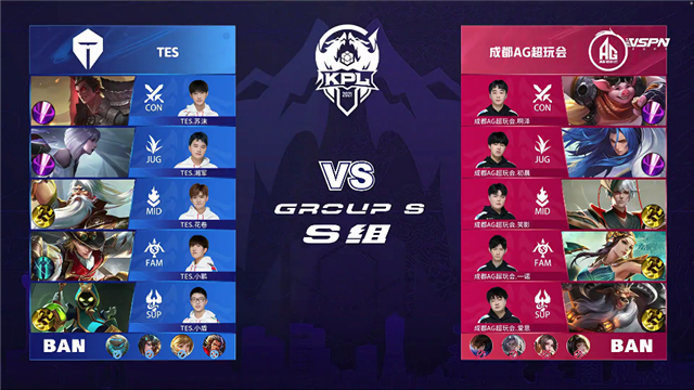 双方和平开局,2分23秒成都AG拿下第一条暴君,4分45秒成都AG拆掉TES下路一塔。5分59秒成都AG上路一塔被破,6分26秒成都AG拿下先知主宰,TES拿下暴君。7分钟中路团战TES打出2换3,拆掉成都AG中路一塔。8分30秒TES击杀成都AG橘右京,10分40秒中路团TES打出0换2,11分05秒TES拿下暗影暴君。12分20秒野区团成都AG击杀太乙真人,12分42秒成都AG拿下暗影主宰。13分16秒成都AG拆掉TES中路一塔,15分10秒野区团TES打出1换3,橘右京天秀击杀姜子牙后被镜击杀。17分钟TES拆掉成都AG上路二塔,17分21秒TES拿下暗影主宰,18分30秒成都AG牛魔被击杀。19分30秒成都AG三路二塔被破,20分34秒团战TES打出0换3,21分04秒TES拆掉成都AG下路高地,成都AG无力防守被一波拆掉水晶。