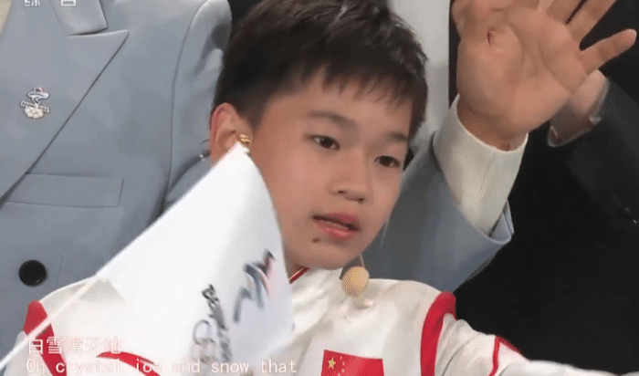 全红婵是舞台上年龄最小的运动员,这也是她第一次在公开场合唱歌,此前全红婵名气并不大,但是奥运会夺金和全运会双金王,让这个14岁的小姑娘声名鹊起。这次上演冠军级的表演,全场都是奥运冠军,也都是全红婵的前辈,只见她挥舞北京冬奥会旗帜,还在夏雨和萧敬腾身边,卖力的献唱歌曲,非常可爱。