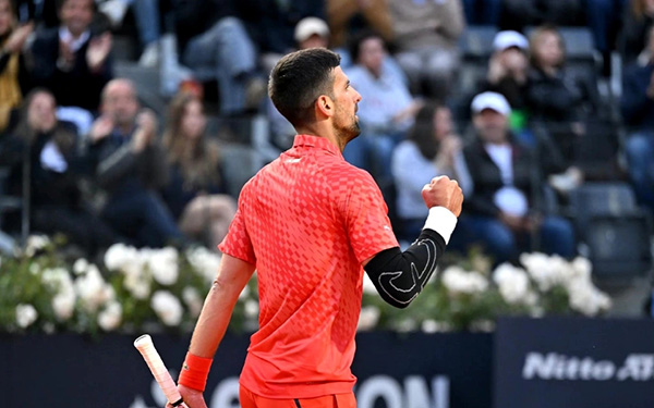 24直播网讯 北京时间今天凌晨,2023年罗马大师赛第二轮,头号种子德约科维奇对阵埃切韦里。经过1小时51分钟的较量,塞尔维亚人7-6(5).6-2战胜对手,晋级第三轮。