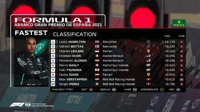 24直播网讯 北京时间5月7日晚,2021F1西班牙大奖赛第二次自由练习赛在加泰罗尼亚赛道结束。经过一个多小时的争夺,梅奔车手汉密尔顿以1分18秒170排名第一,他的队友博塔斯和法拉利车手勒克莱尔分别排在第二和第三。P4-P10分别为:奥康、阿隆索、加斯利、角田裕毅、塞恩斯、维斯塔潘、佩雷兹。红牛车手维斯塔潘的软胎飞驰圈出现失误,并没有跑出非常有竞争力的一圈。