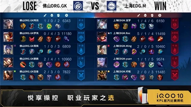 开局佛山DRG.GK中路五人起手打出上海EDG.M中、游双闪现。3分05秒双方发育路1换1。4分22秒双方对抗路1换1,佛山DRG.GK拿下暴君。5分33秒上海EDG.M野区击杀夏侯惇。6分42秒佛山DRG.GK拿下主宰。7分36秒上海EDG.M中路击杀曹操并摧毁敌方中路外塔。8分03秒上海EDG.M野区击杀鲁班七号。8分24秒野区双方1换1。9分33秒发育路团战上海EDG.M打出1换2。10分24秒上海EDG.M拿下暗影主宰。11分27秒上海EDG.M摧毁敌方发育路二塔。11分40秒上海EDG.M摧毁敌方中路二塔。12分33秒上海EDG.M拿下暗影暴君。14分30秒上海EDG.M拿下暗影主宰。16分04秒上海EDG.M强点水晶拿下比赛。