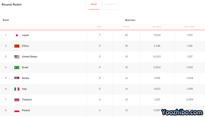 2022世界女排联赛积分榜