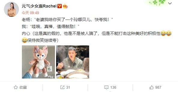 老杨:“老婆我给你买了一个玲娜贝儿,快夸我!”