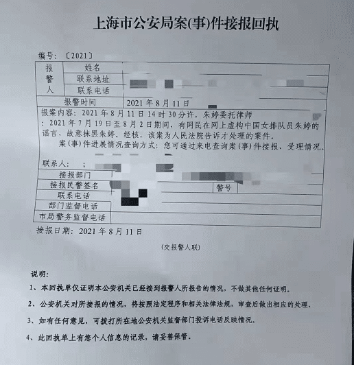 来源:24直播网08-12 15:2724直播网讯 北京时间8月11日,中国女排队长朱婷在社交媒体晒出了报案回执,在奥运会期间有部分网友散发虚构关于朱婷的谣言,故意抹黑朱婷的言论,其中包括了给朱婷戴着队霸、与队友不和、女排出局罪人、接代言影响状态等等的帽子,这些都是子虚乌有的。面对种种谣言朱婷选择用法律手段维护自身的合法权益,她表示“已公正 固定证据;已报案 请求追究刑事责任;下一站 人民法院!”