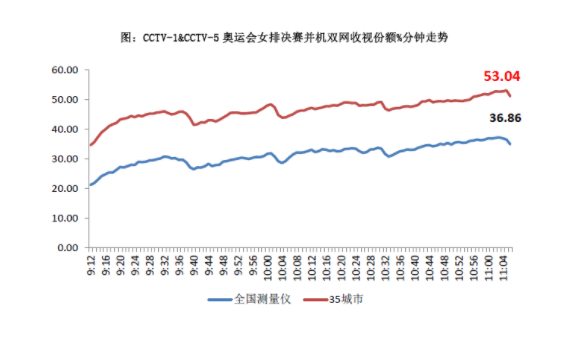 如果中国女排可以小组赛晋级到八强,然后顺利的通过四分之一决赛和半决赛,杀入到最终的决赛,相信在8月8日晚上,将会有无数人等着观看中国女排的决赛卫冕金牌之战,收视率也一定会创造新高。这一点有数据可以参考,上一届里约奥运会,中国女排决赛3-1击败塞尔维亚夺冠,当时直播中国女排夺冠之战的电视台最高分钟收视份额高至53.04%,相当恐怖的数据;