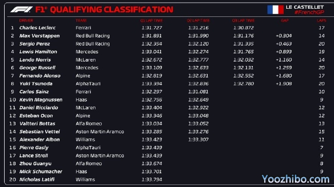 07月23日 2022F1法国大奖赛排位赛 全场录像回放