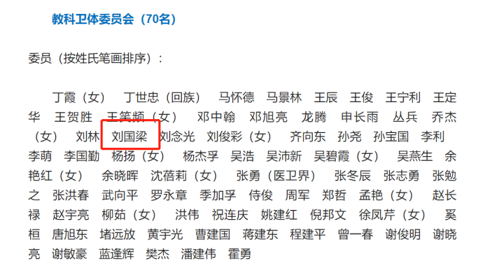 为什么这样说呢?近期,新华社公布了全国教科卫体委员会委员的名单(共70人),而刘国梁也是出现在了名单中,这也意味着刘国梁也是正式上任了教科卫体委员会委员的新职务。看到这个职务,或许很多球迷会迷茫,这个职务是干什么的呢?教科卫体委员会委员的职责又是什么的呢?